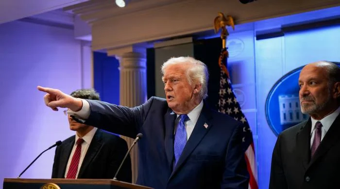 US President Donald Trump and Secretary of Commerce Howard Lutnick attend a press briefing at the White House, following the Supreme Courts ruling that Trump had exceeded his authority when he imposed tariffs, in Washington, DC, US, January 20, 2026. — Reuters