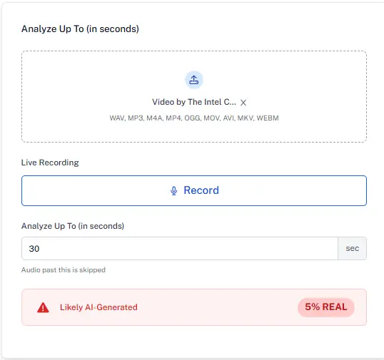 Running the video through AI-forensic tools showed that Undetectable labelled the audio as 95 per cent AI-generated.