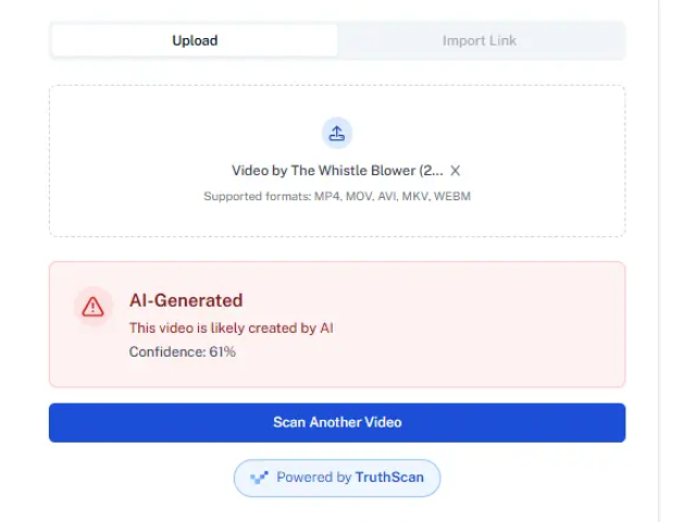 Similarly, forensic analysis of the audio from the viral clip was conducted using several AI detection tools, which also showed that it was AI-generated. Truth Scan showed that the audio was 99pc AI-generated.