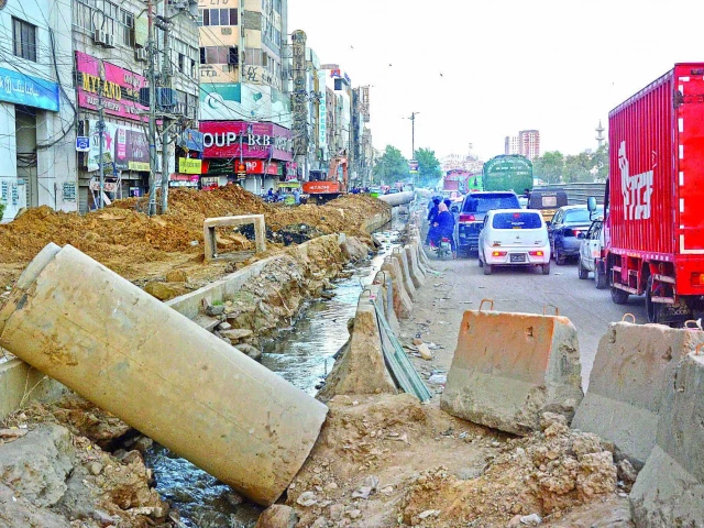 As 2025 comes to a close, the city grapples with consequences of unfinished development projects — broken roads, blocked sewers, and rising pollution continue to endanger public health. Photo: Express
