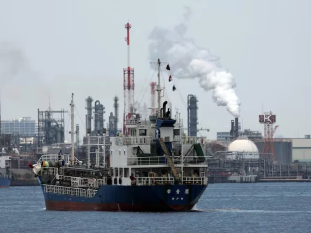 A small tanker sails near an oil refinery, in the Keihin Industrial Zone in Kawasaki, south of Tokyo, Japan March 17, 2026. PHOTO: REUTERS